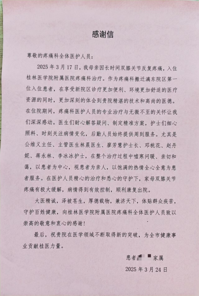 2025年3月疼痛科锦旗和感谢信-患者来信-医德医风 行风专题网-专题-桂林医科大学第一附属医院【官方网站】