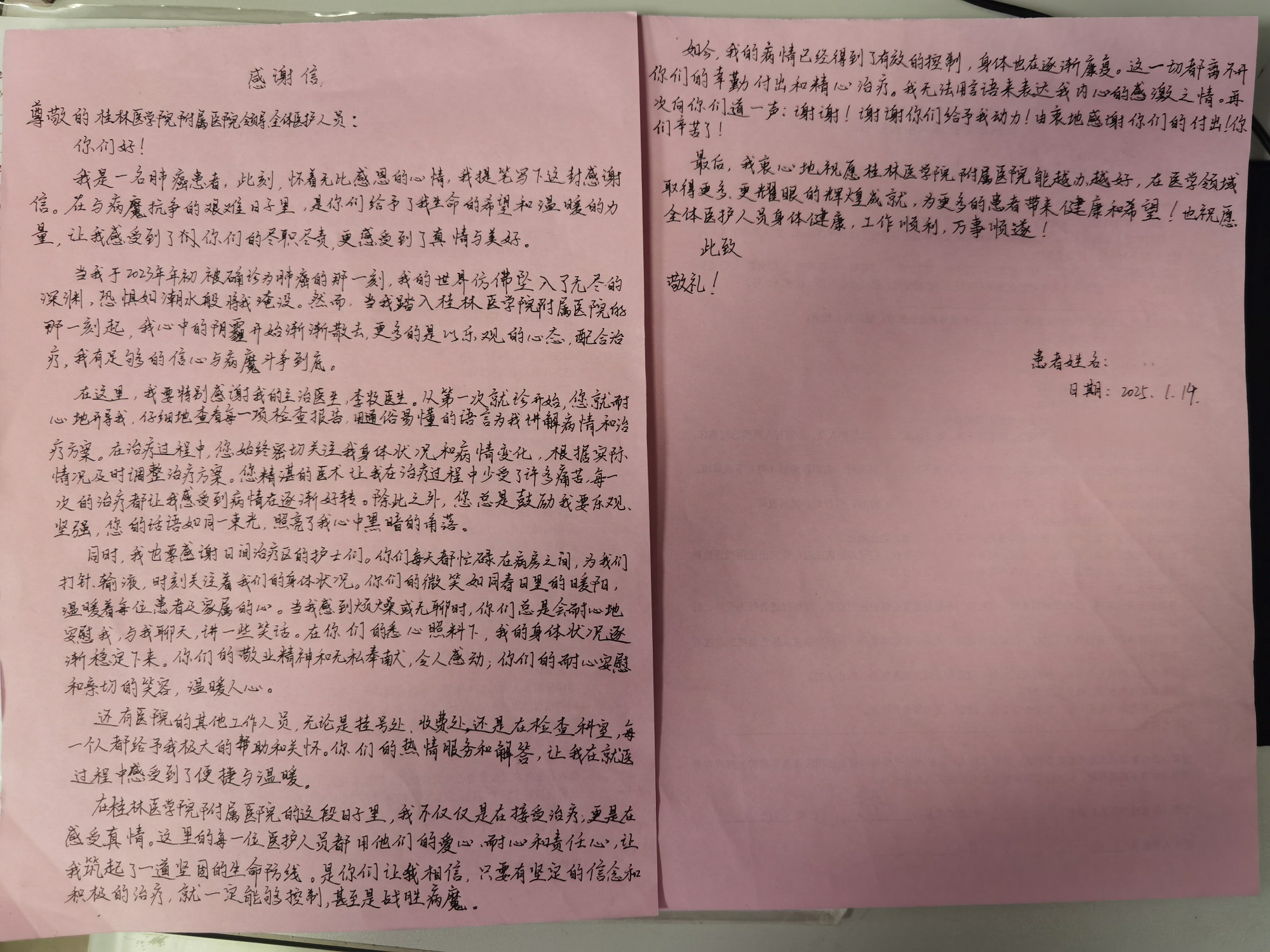 2025年1月日间治疗专区感谢信-患者来信-医德医风 行风专题网-专题-桂林医科大学第一附属医院【官方网站】