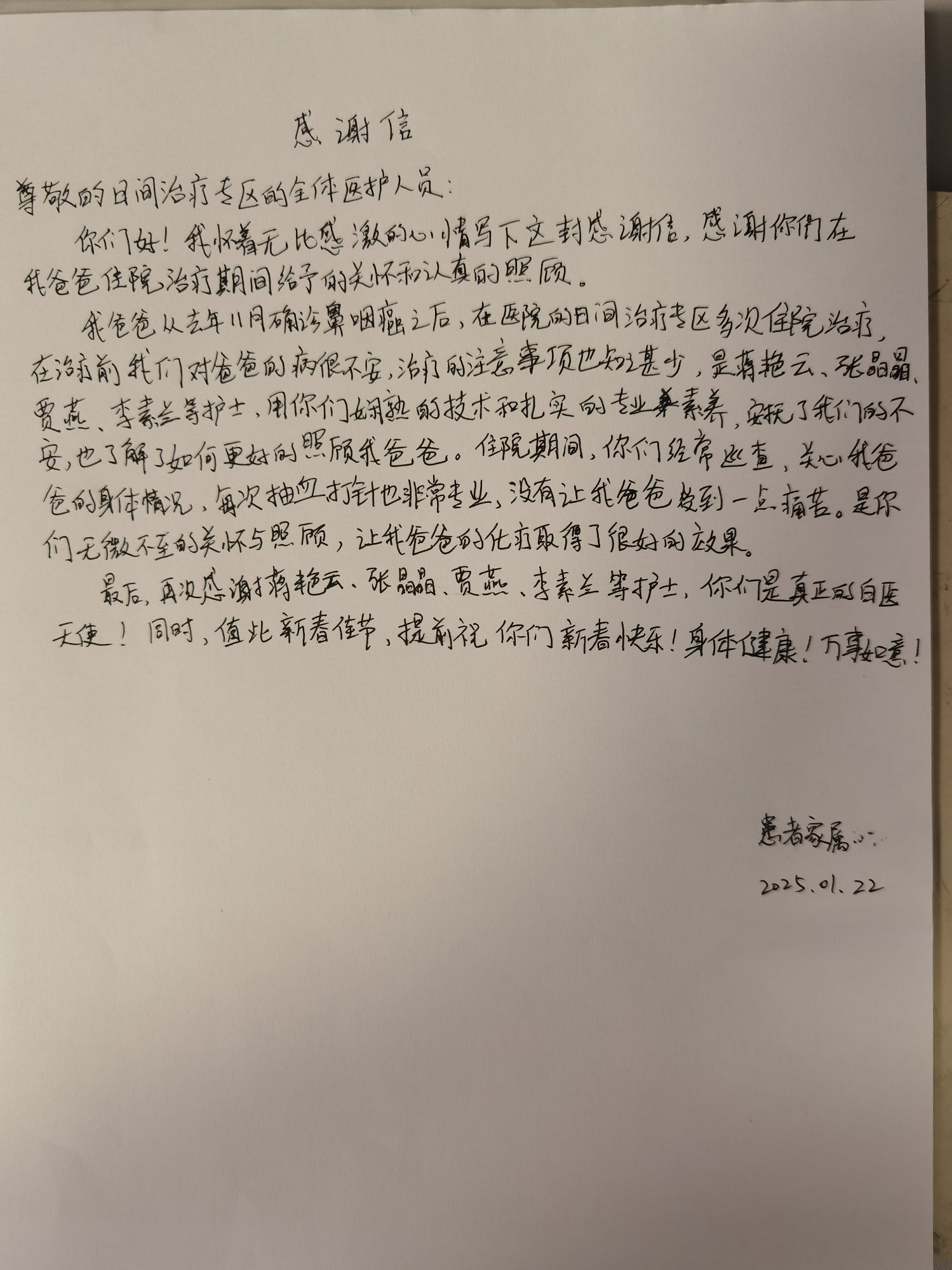 2025年1月日间治疗专区感谢信
