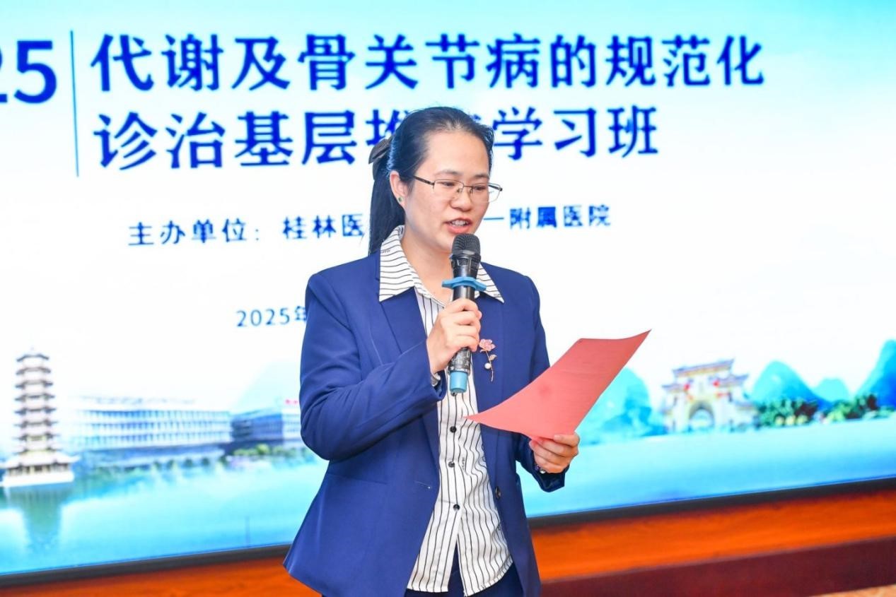 为深入贯彻落实新时代卫生健康工作方针,推动优质医疗资源下沉,提升基层医师对代谢及骨关节病的诊疗水平,2025年11月22日,由我院主办的“代谢及骨关节病的规范化诊治基层推广学习班”在桂林市顺利举行。