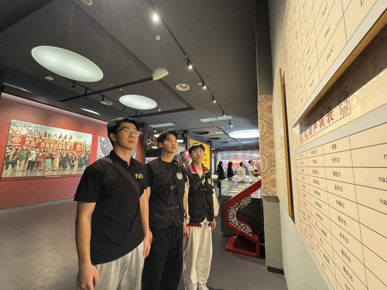 师生们依次参观了展现中华民族“共辟辽阔疆域、共书悠久历史、共创灿烂文化、共育伟大民族精神”主题展厅。通过珍贵的民族文物、生动的历史影像和丰富的互动体验,大家系统了解了广西12个世居民族的悠久历史、独特风俗和显著发展成就,深刻感受到各民族交往交流交融的历史脉络和文化底蕴。