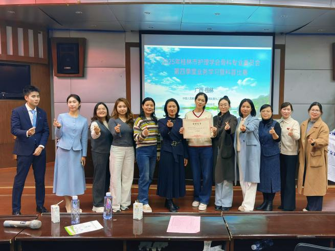 冬日暖阳聚合力,科普赋能护健康。11月28日,由我院主办的2025年桂林市护理学会骨科专业委员会科普比赛成功举办。我院骨科护理团队凭借作品《村口“骨”事大揭“密”》,以扎实的专业底蕴、生动的演绎形式,从全市18支区市两级医院、县级医院精英队伍中脱颖而出,斩获区市两级医院组一等奖,充分彰显了我院在骨科护理与健康科普领域的区域引领实力。